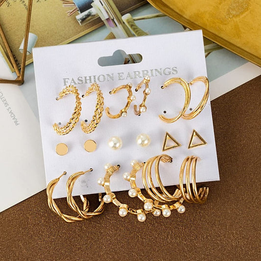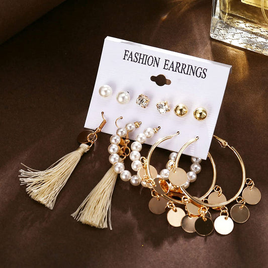6 and 9 Pairs Assorted Multiple Stud Earrings Big Hoop Tassel Drop Pearl Earrings for Women and Girls (Trandy combo)
