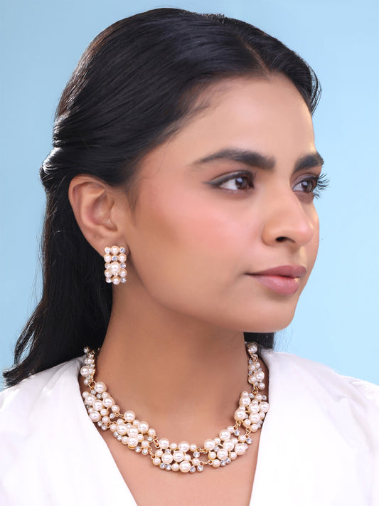 Jewellery Set for Women and Girls Fashion Pearl Necklace Set for Women White Crystal Pearl Set | Silver Toned Pearl Necklace Set | Birthday Gifts For Women Valentine Gift for Girls
