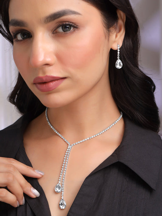 American Diamond Necklace Set For Women | White Stone Silver Jewellery Set For Women | Diamond Necklace Set | Birthday Gift for Girls Anniversary Gift for Wife