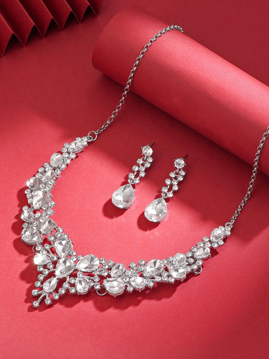Jewellery Set for Women Sparkling White Crystals Jewellery Set with Earrings Necklace Set for Women and Girls