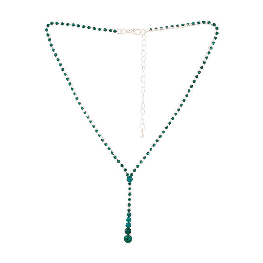 Jewellery Set For Women Silver Tone Drak Green Crystal Studded Necklace With Dark Green Crystal Dangler Earring For Women and Girls