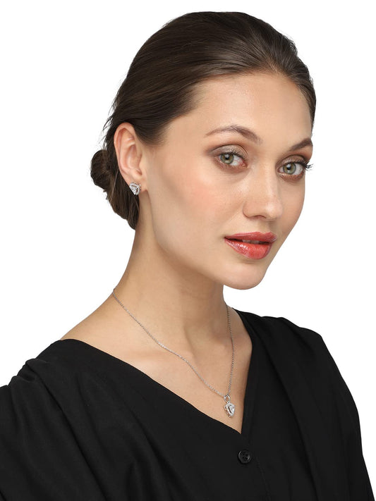American Diamond Pendant Set For Women | White Stone Silver Jewellery Set For Women | Diamond Pendant Set | Birthday Gift for Girls Anniversary Gift for Wife