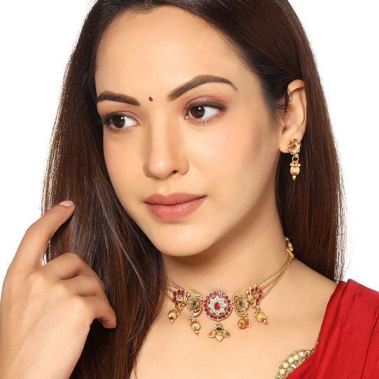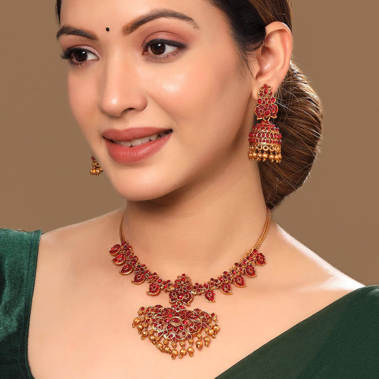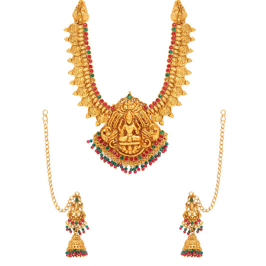 Necklace Set for Women And Girls Traditional Jewellery Set for Women Gold-Plated Temple Necklace Set Stone-Studded Necklace Set For Women & Girls