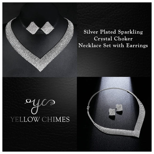 Jewellery Set for Women and Girls Fashion White Crystal Jewellery Set for Women | Silver Toned Crystal Choker Necklace Set | Birthday Gifts For Women Valentine Gift for Girls