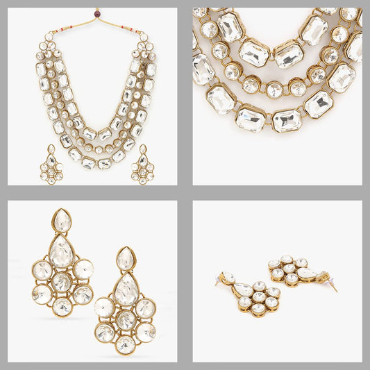 Jewellery Set for Women and Girls Traditional White Necklace Set for Women | Gold Plated Multilayer Crystal Necklace Set | Birthday Gift for girls and women Anniversary Gift for Wife