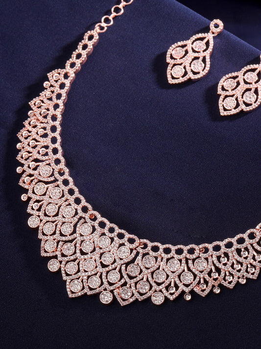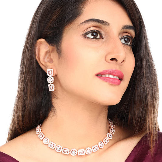 American Diamond Necklace Set For Women | White Stone Rose Gold Jewellery Set For Women | Diamond Necklace Set | Birthday Gift for Girls Anniversary Gift for Wife