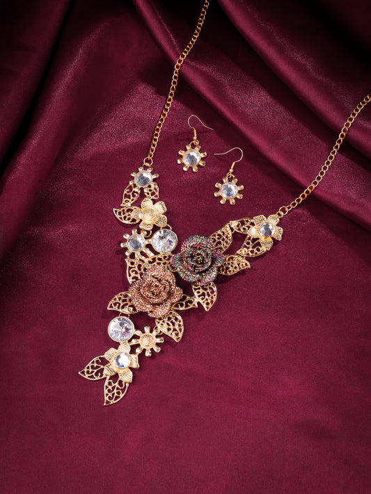 Jewellery Set For Women Gold Plated Crystal Studded Floral Designed Traditional Choker Necklace Set with Earrings For Women and Girls