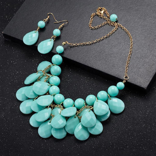 Jewellery Set For Women Blue Stone Tear Drop Designed Gold Toned Necklace Set For Women and Girls