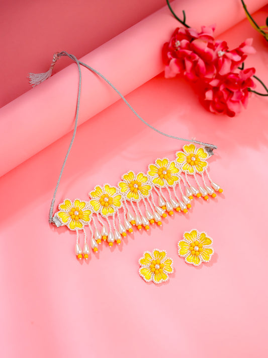 Haldi Jewellery Set: Elegant Yellow Floral Choker & Earring Set