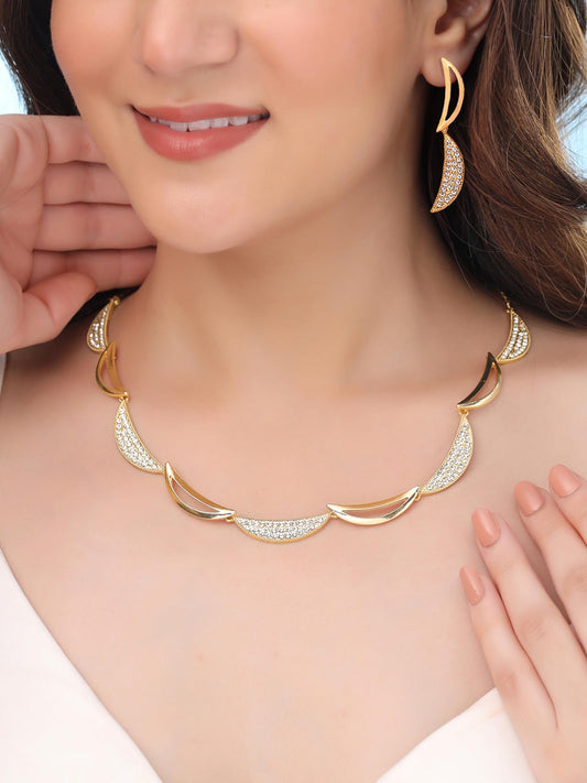 Stunning Gold Plated Diamond Necklace Set: AD Jewellery Set | Includes Earrings | 22 cm