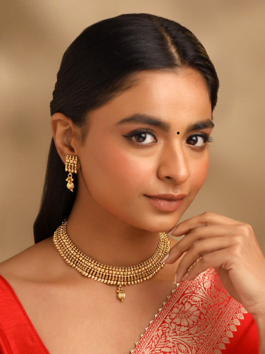 Traditional Gold Plated Jewellery Set: Stunning Choker & Earrings | Adjustable | Gold | Perfect for Occasions