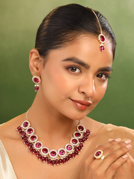 Jewellery Set: Traditional Beaded Choker Set with Earrings & Maangtikka | Gold Plated | One Size