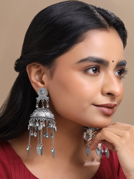 Oxidised Silver Chandbali Earrings for Women - Traditional Jhumka | One Size | Oxidised Silver