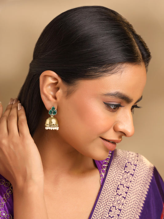 Earrings For Women's & Girls | Traditional Green And Gold Jhumka | Gold Plated Earring | Leaf Shaped Jhumki With Hanging Pearls | Birthday & Anniversary Gift