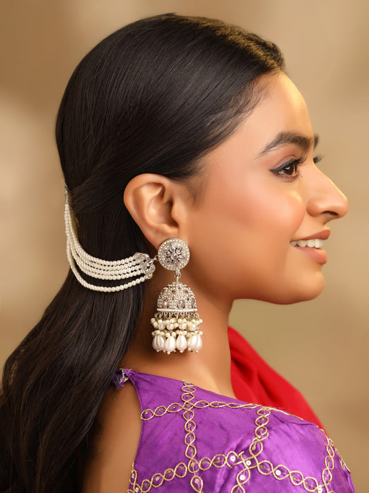 Gold Plated Pearl Jhumka Earrings for Women - Stunning Design | 8 cm