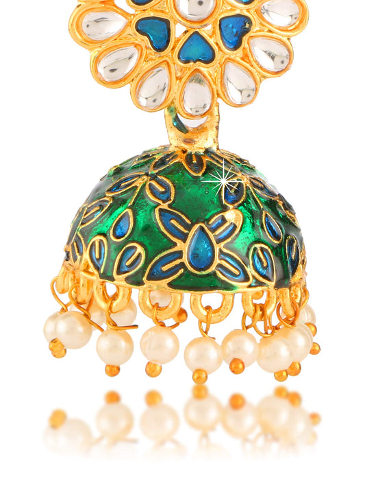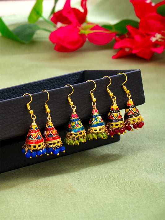 Craftsmanship Work Meenakari Handcrafted Jaipur Rajasthani Style Traditional Gold Plated Multicolour Jhumka/Jhumki Earrings for Women - Combo of 3 Pair