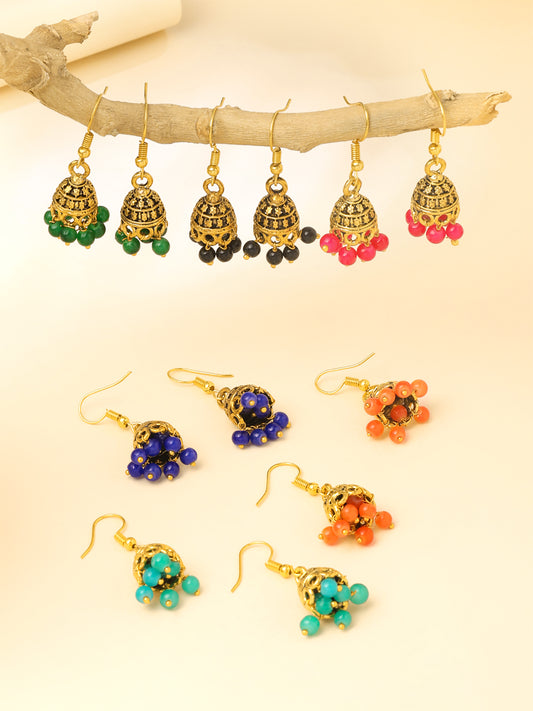 Jhumka Earrings for Women Combo of 6 Pairs Golden Silver Oxidized Traditional Jhumki/Jhumka Earrings for Women and Girls.