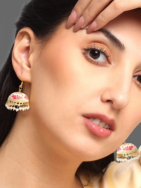Meenakari Jhumka Earrings for Women Girls | Enamel Pink Jhumka Earring | Traditional Gold Plated Pearl Heavy Jhumki Earrings |Eternal Elegance | Birthday Anniversary Gift for Girls Women