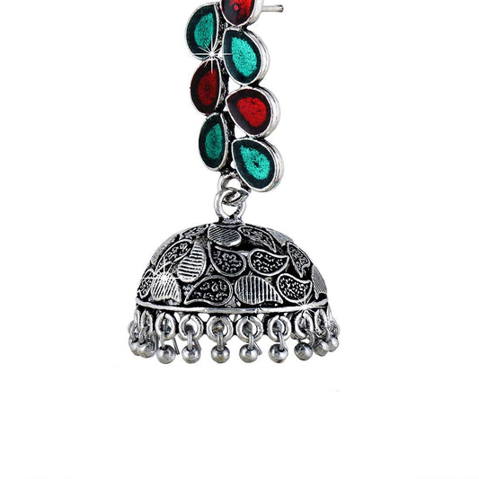 German Silver Oxidized Jhumka Meenakari Touch Traditional Jhumki/Jhumka Earrings for Women