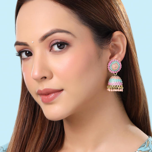 Meenakari Workmanship Latest Stylish Jhumkas Earrings for Women and Girls