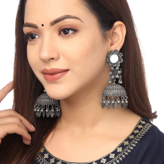 Earrings for Women and Girls Traditional Silver Oxidised Jhumka Earrings | German Silver Floral Big Jhumki Earrings | Birthday Gift For girls and women Anniversary Gift for Wife