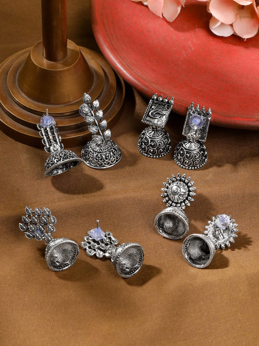 Silver Oxidised Jhumka Earring For Women | Combo of 4 Pairs Traditional Oxidised Silver Jhumki Earrings Set | Eternal Elegance | Birthday Gift For Girls & Women Anniversary Gift for Wife