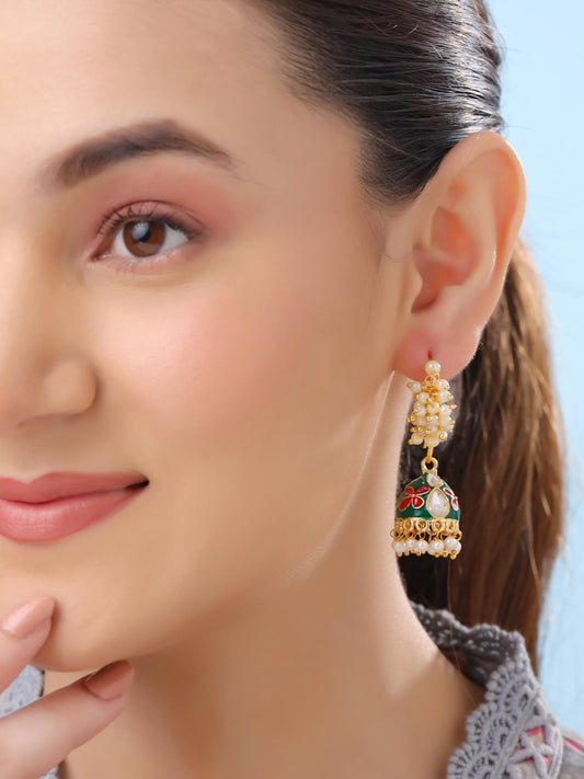 Meenakari Jhumka Earrings: Multicolor Traditional Gold Plated | 5.4cm