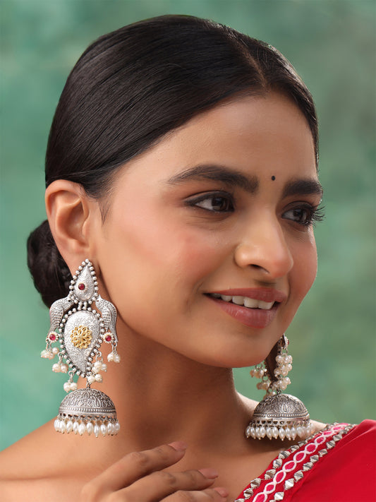 German Silver Oxidized Jhumka Meenakari Touch Traditional Jhumki/Jhumka Earrings for Women