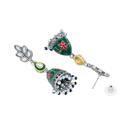 Earrings for Women and Girls Meenakari Jhumka | Silver Tone Green Meenakari Jhumki Earrings | Birthday Gift for girls and women Anniversary Gift for Wife