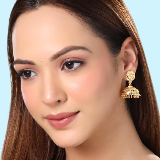 Jhumka Earrings: Traditional Gold Plated with Pearls | One Size | Gold