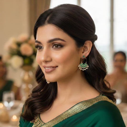 Traditional Moti Kundan Chandbali Earrings for Women and Girls