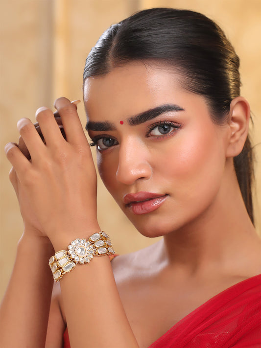 Gold Plated Kundan Bracelet: Traditional Women's Jewelry | Gift for All Occasions
