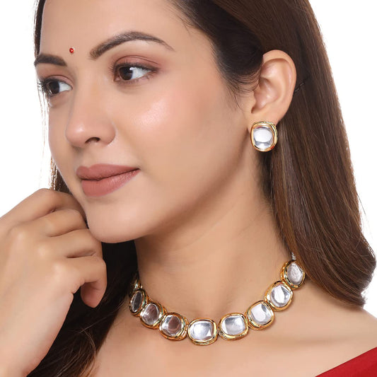 Jewellery Set for Women and Girls Traditional Kundan Necklace Set Gold Plated Kundan Choker Necklace Set | Birthday Gift for girls and women Anniversary Gift for Wife