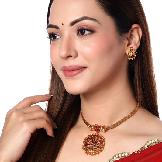 Jewellery Set for Women and Girls Traditional Red Kundans Necklace Set | Gold Plated Peacock Designed Necklace Set | Birthday Gift for girls and women Anniversary Gift for Wife