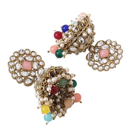 Earrings for Women Gold Toned Kundan Studded Traditional Jhumka Earrings for Women and Girls
