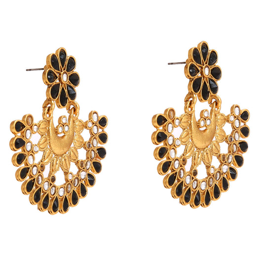 Ethnic Black Kundan Studded Traditional Gold Plated Chand Bali Earrings for Women and Girls