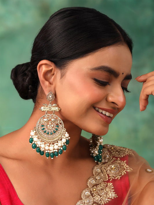 Chandbali Earrings for Women Gold Plated Traditional Earrings Green Kundan Studded Long Chand bali Earrings for Women and Girls