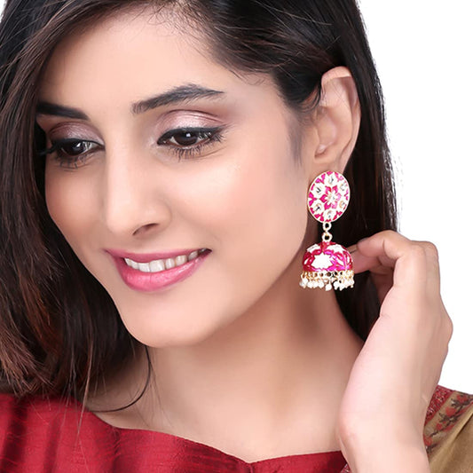 Earrings For Women's & Girls | Traditional Pink Meenakari Jhumka | Gold Plated Kundan Jhumkas | Floral Jhumki Earrings | Birthday & Anniversary Gift