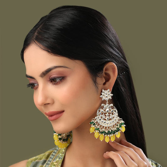 Earrings for Women and Girls Traditional Kundan Chandbali | Gold Plated Kundan Studded Yellow Beads Drop Chandbali Earrings | Birthday Gift for girls and women Anniversary Gift for Wife