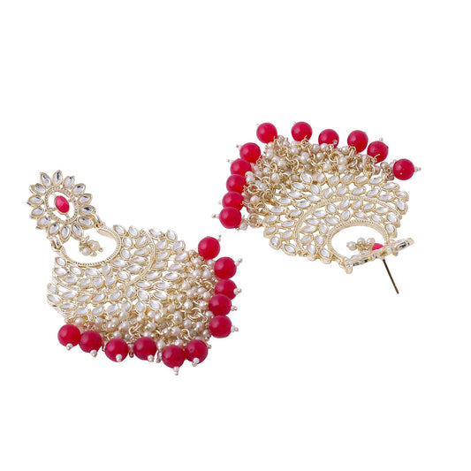 Earrings for Women and Girls Kundans Chandbali | Gold Plated Kundan Studded Red Beads Drop Earrings | Birthday Gift for girls and women Anniversary Gift for Wife