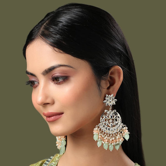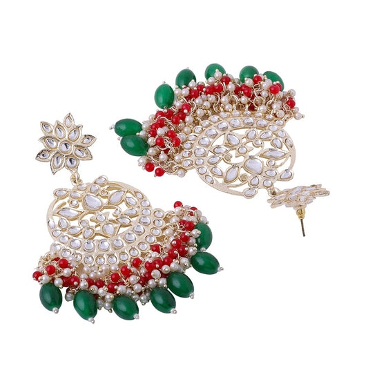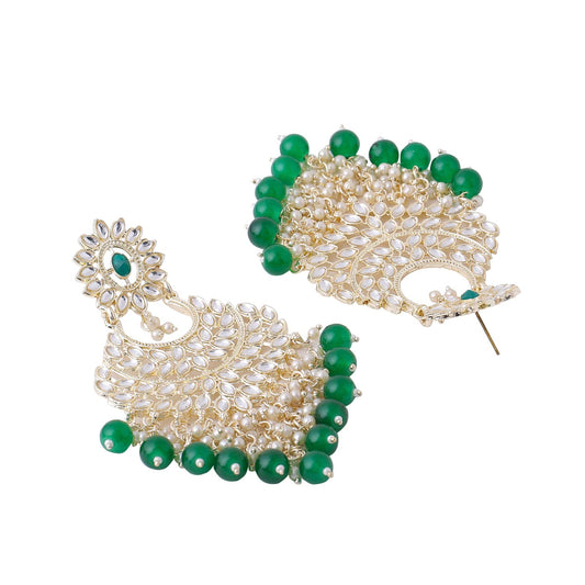 Earrings for Women and Girls Traditional Kundan Chandbali | Gold Plated Kundan Studded Green Beads Drop Chandbali Earrings | Birthday Gift for girls and women Anniversary Gift for Wife