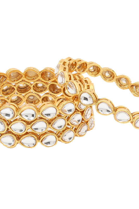 Classic Design White Kundan Studded 4 PCs Traditional Gold Plated Bangles Set for Women and Girls (2.8)