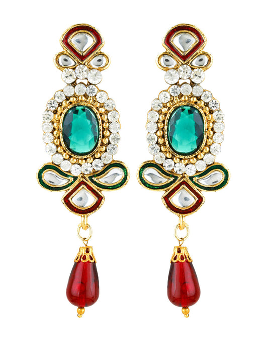 Earrings For Women Gold Tone White and Red Kundan Studded Chandbali Earrings For Women and Girls