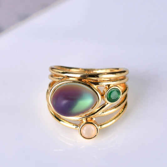 Gold Tone Multilayered Statement Ring with Kundan Stones | US 7 | For Women
