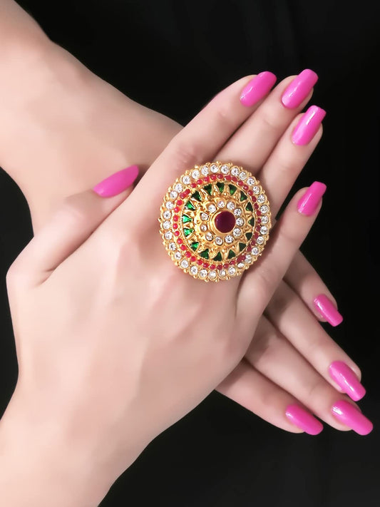 Rings for Women and Girls | Traditional Gold Cocktail Ring | Adjustable Kundan Stone Rings | Gold Plated Ring | Floral Shaped Finger Ring for Women|Birthday and Anniversary Gift..