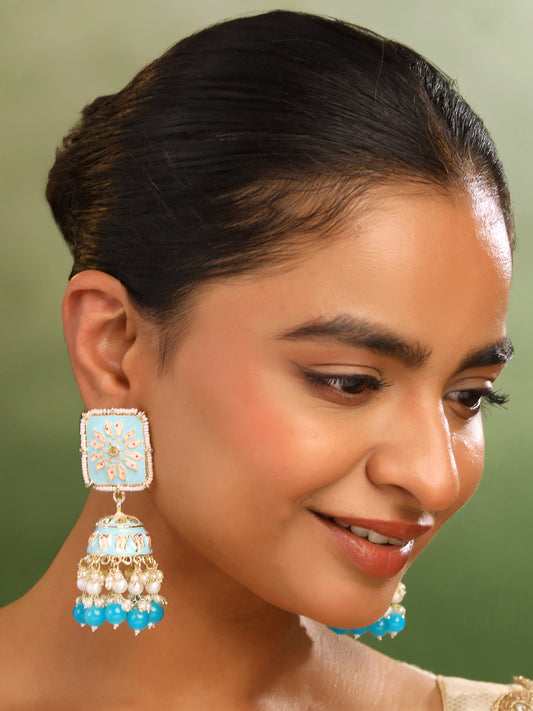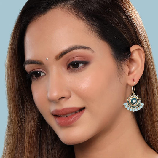 Chand Bali Earrings - Beautiful Enamelled Meenakari Design | Blue | for Women