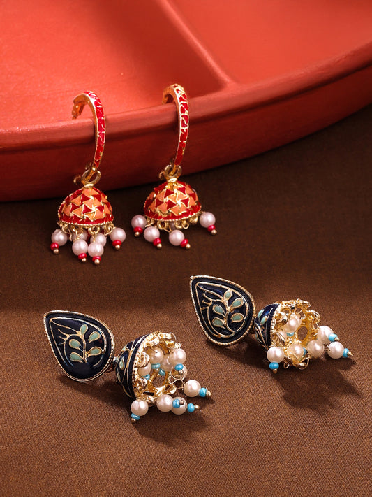 Stud Earrings for Women Combo of 2 Pairs Red and Blue Meenakari Moti Design Traditional Stud Earrings for Women and Girls