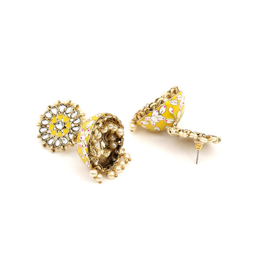 Meenakari Jhumka Earrings for Women Meenakari Handcrafted Gold Plated Traditional Yellow Jhumka/Jhumki Earrings for Women and Girls.