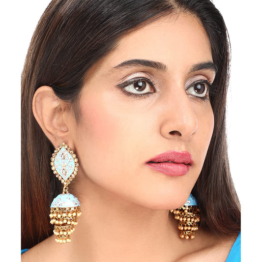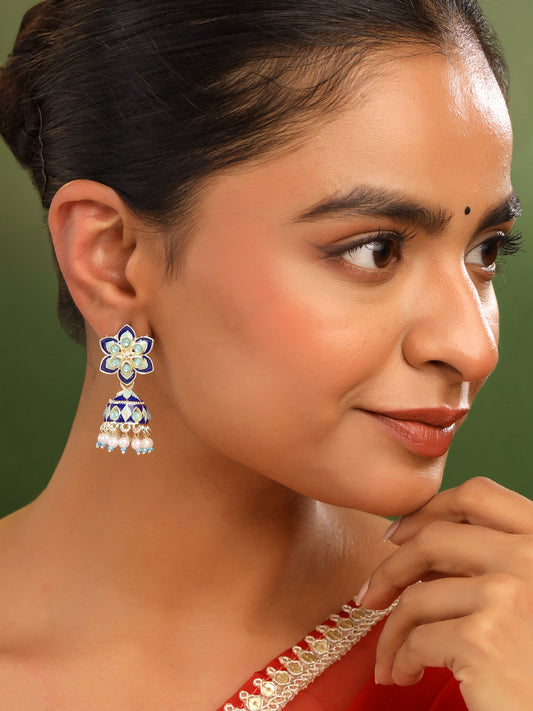 Meenakari Jhumka Earrings Handcrafted Gold toned Traditional Multicolor Jhumka/Jhumki Earrings for Women and Girls (Dark Blue Jhumka)