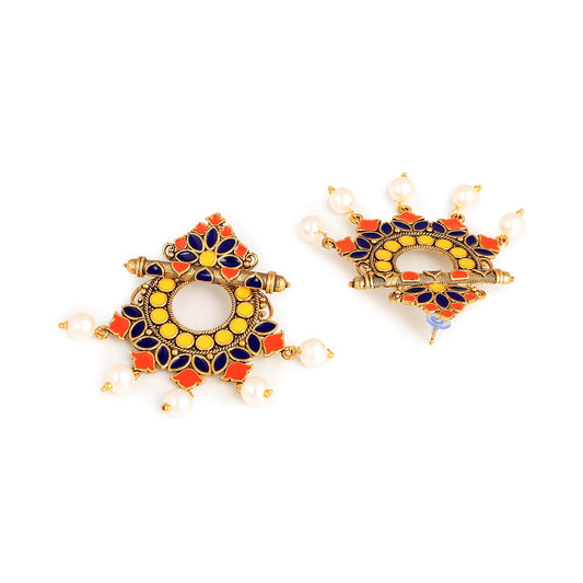 Beautifully Enamelled Gold Plated Meenakari Chand Bali Earrings for Women and Girls…